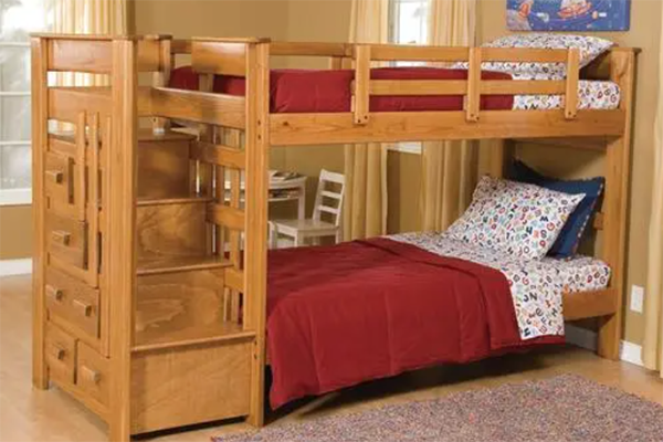 双层床的安全性比较差,很多这类的床都是没有很好的安全保障的,小孩子他们都喜欢玩,有的时候会在床上蹦蹦跳跳的,很容易让上层的床铺掉下来的,这是一个非常大的安全隐患的。